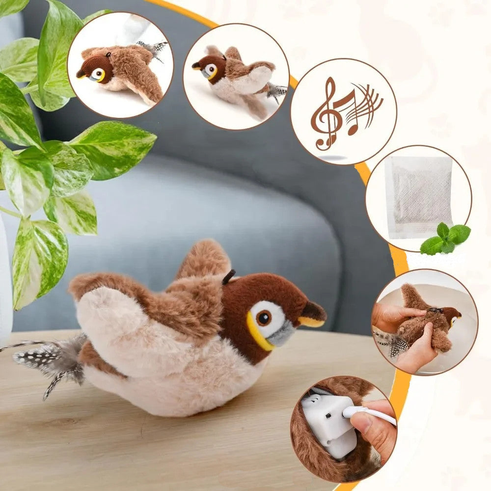 Die beweglichen Flügel ahmen das Verhalten eines echten Vogels nach und wecken den natürlichen Jagd- und Spieltrieb deines Haustiers.